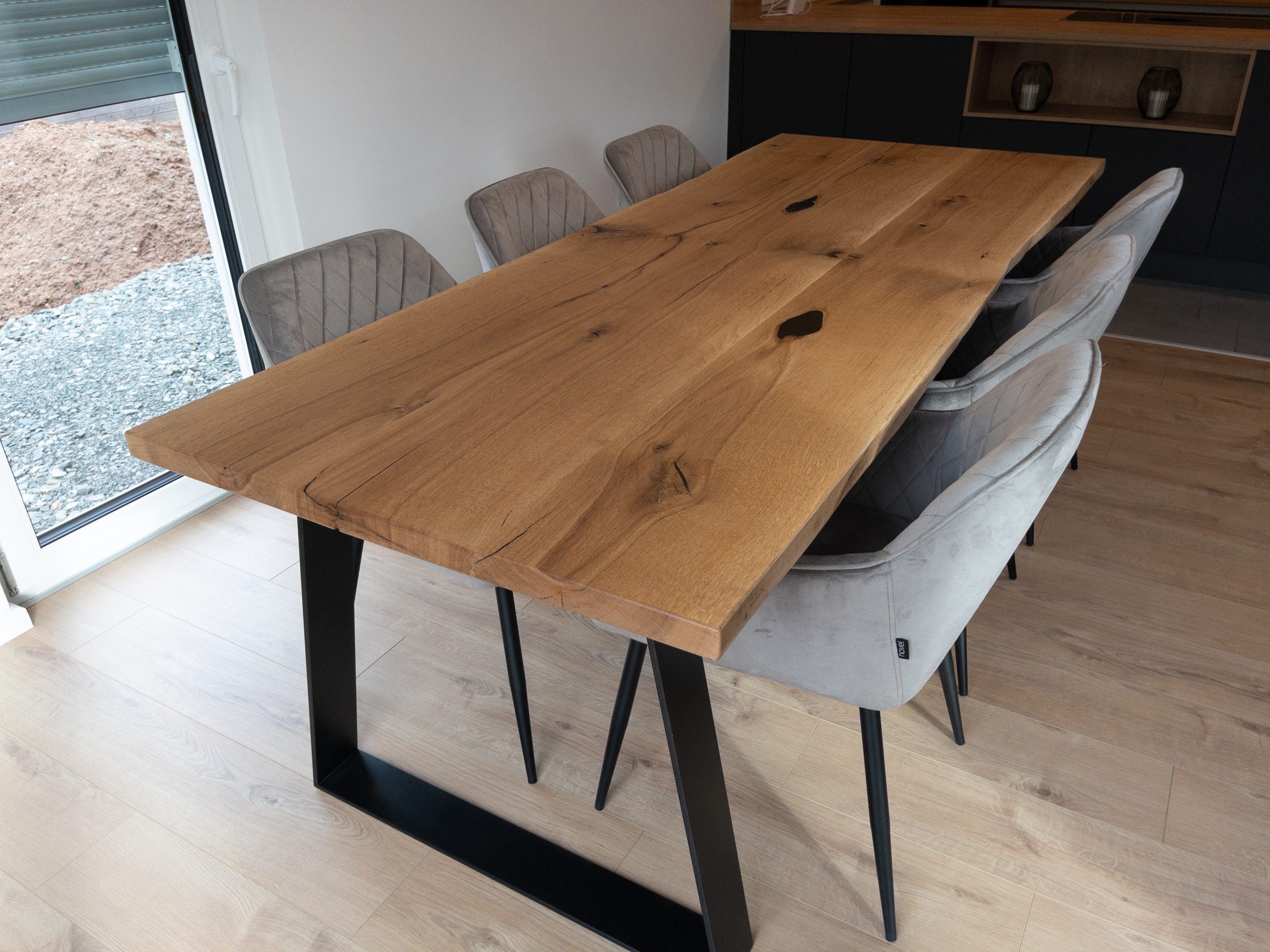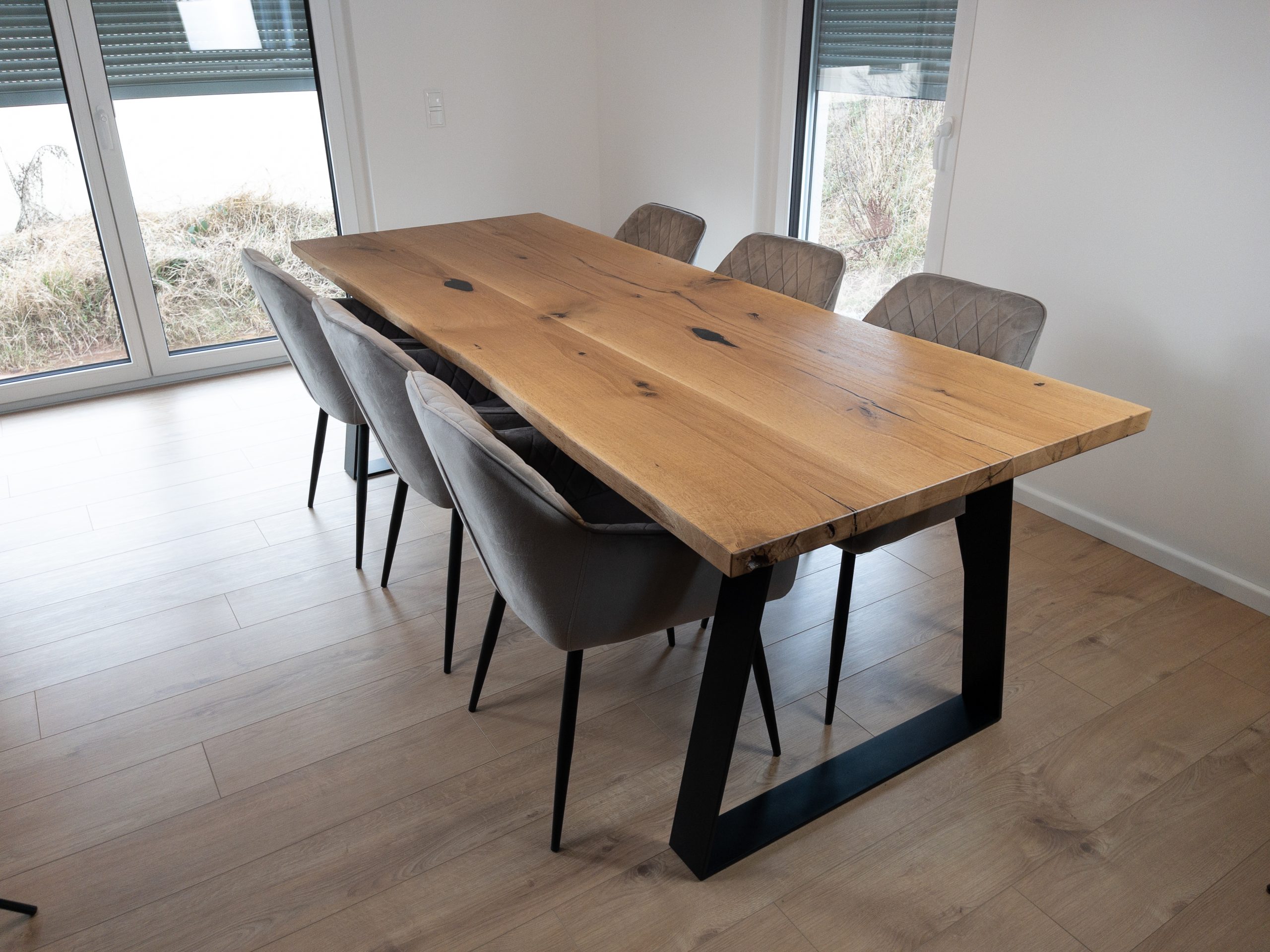 Esstisch aus massiver Eiche mit echter Baumkante.