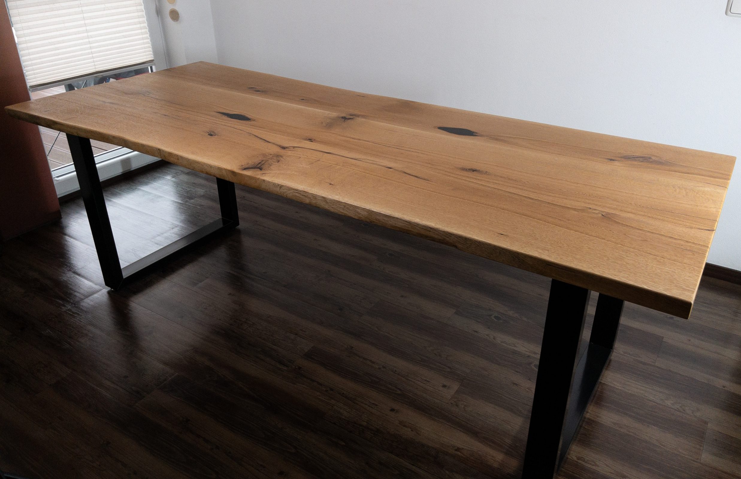 Esstisch aus massiver Eiche mit echter Baumkante.